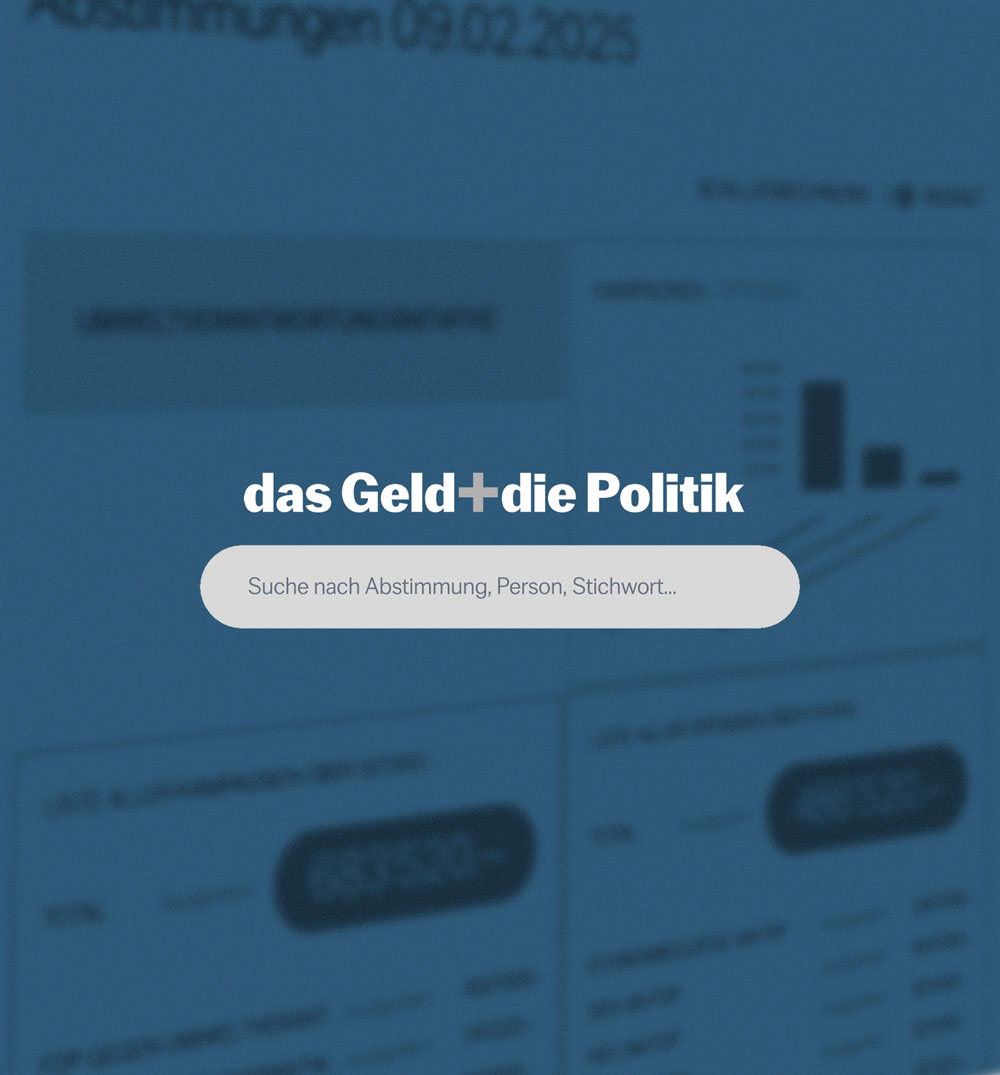 Nos outils rendent le lobbying visible : la base de données sur le lobbying publie les liens entre la politique et les groupes d'intérêt. Notre chronologie documente les événements liés au lobbying pendant les sessions parlementaires. Et dans « l'argent + la politique », nous suivons les flux financiers lors des campagnes référendaires et électorales.